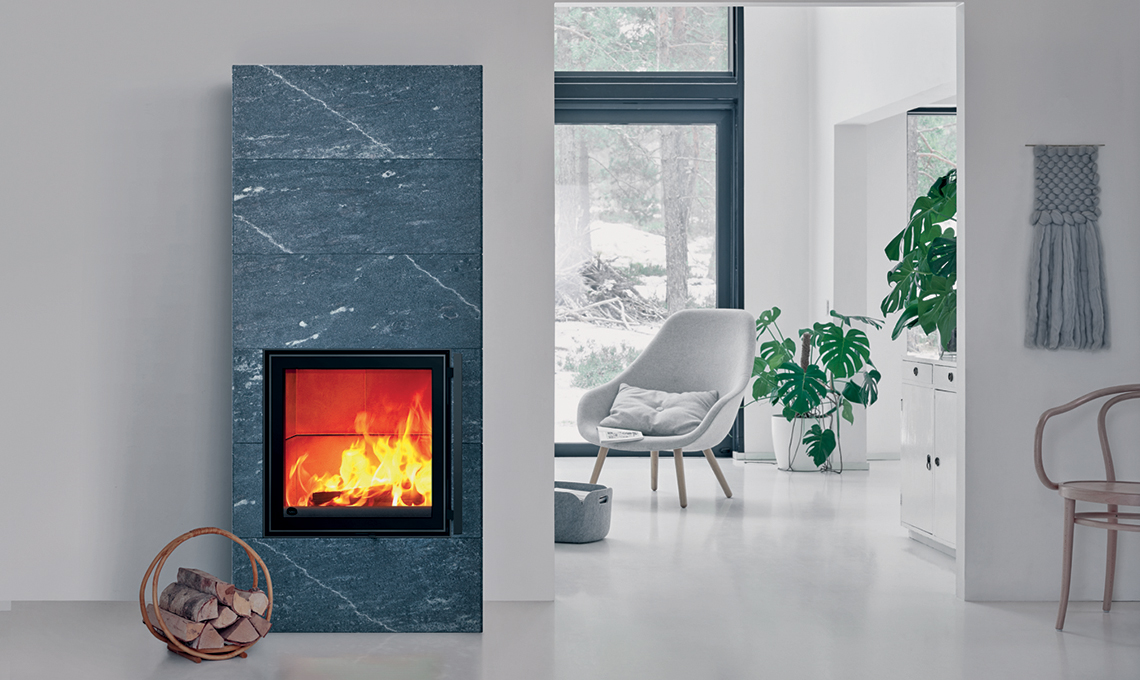 la stufa a legna E928 H consente di canalizzare l’aria calda fino a 10 metri. Certificata 5 stelle, è dotata anche del sistema di accumulo Heat Storage per irraggiare calore anche da spenta [Piazzetta,