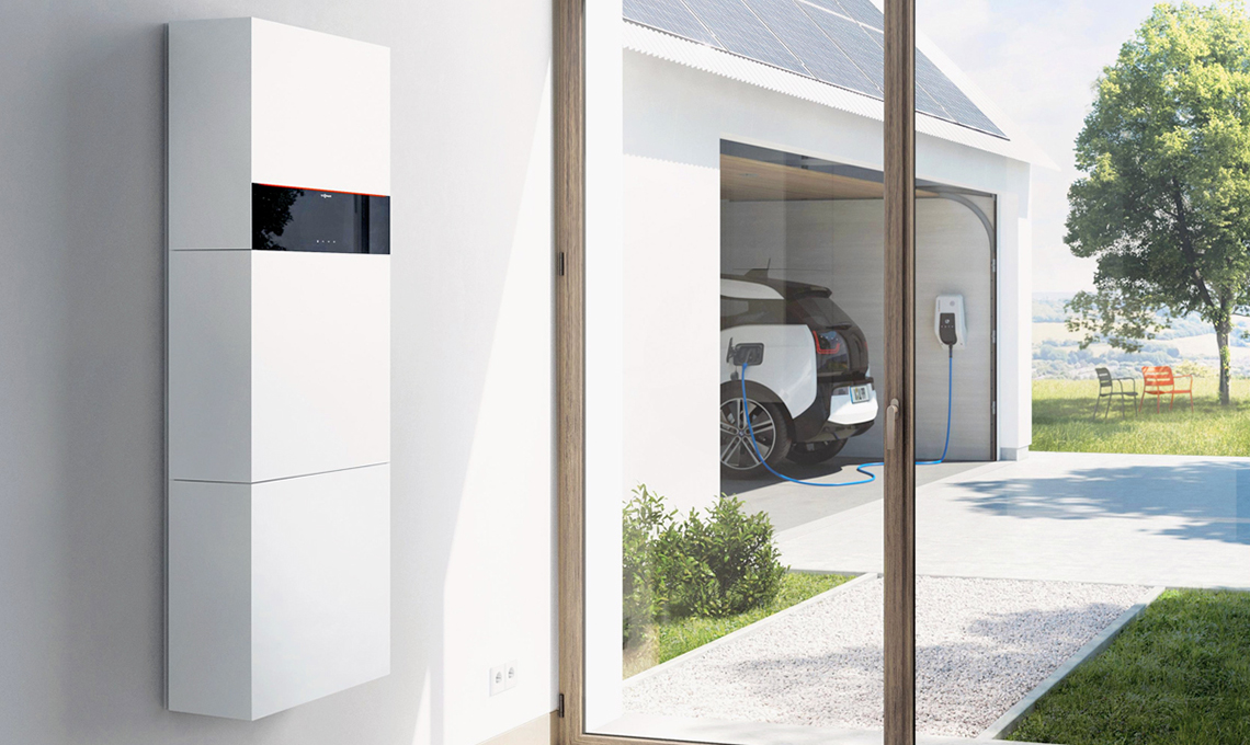 Silenziosa e progettata per riqualificare gli impianti mantenendo i radiatori esistenti, la pompa di calore aria-acqua reversibile Vitocal 252-A ha un bollitore integrato per l’accumulo di acqua calda sanitaria [Viessmann].