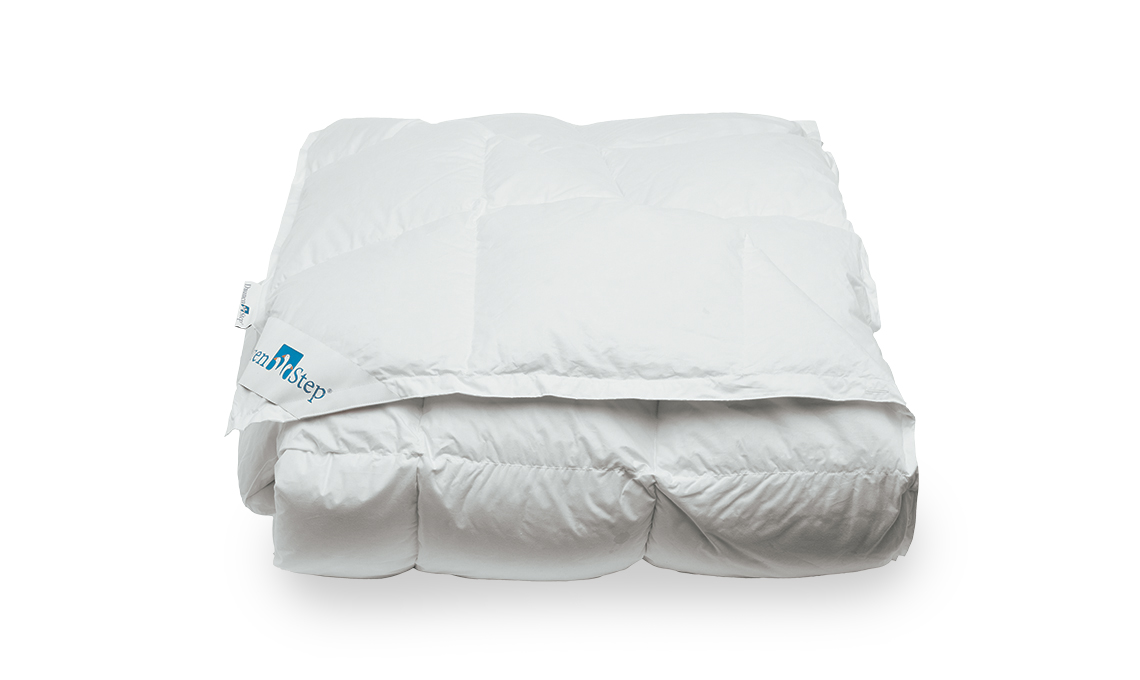 l piumino della linea D400, con rivestimento certificato anti-acaro, ha potere termoregolante e permette di conservare, durante il sonno, una temperatura costante. Dormire anche a18°Csarà un piacere [DaunenStep].