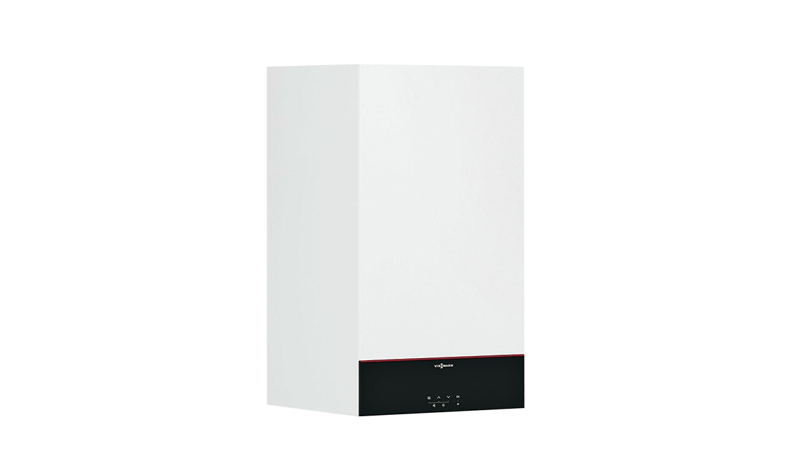 Compatta, la caldaia a condensazione Vitodens 100-W è disponibile per la produzione di acqua calda sanitaria o solo per riscaldamento [Viessmann, cm 40x36x70h]