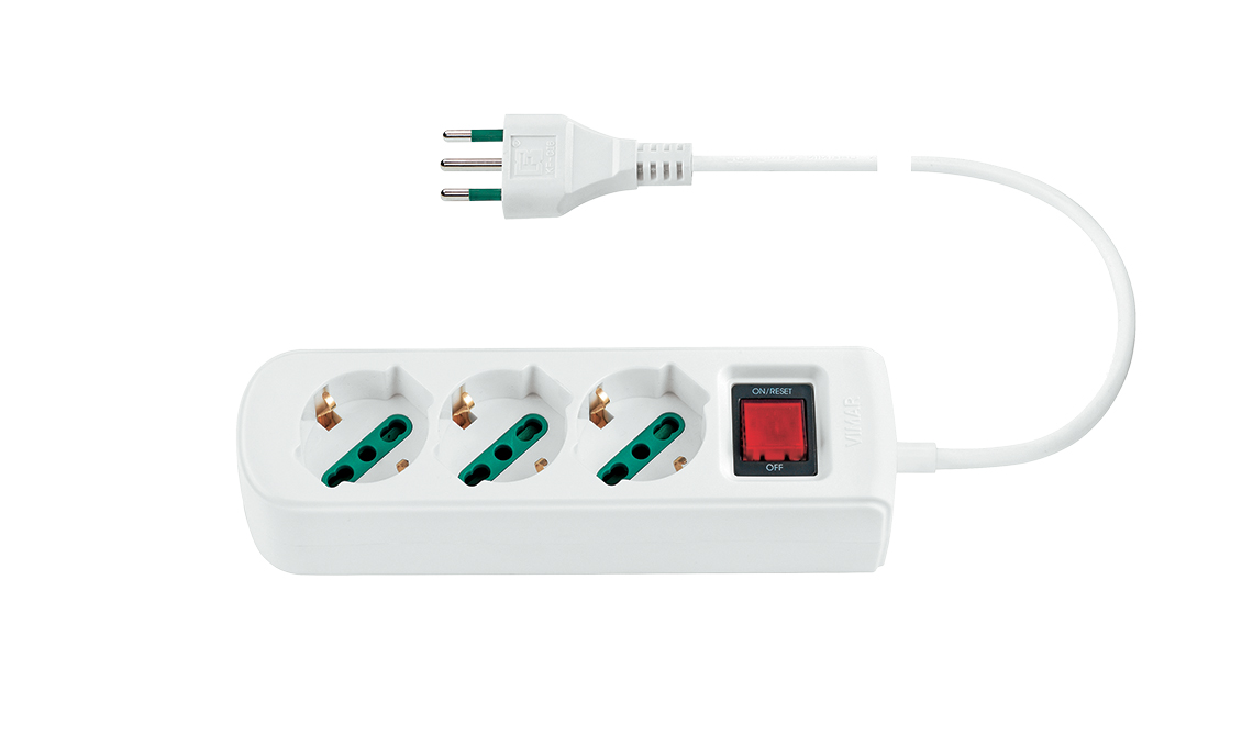 La presa multipla ha 3 uscite universali con inclinazioni a 45° per ottimizzare l’utilizzo con diversi dispositivi e spina orientabile per utilizzo anche salvaspazio [Vimar]