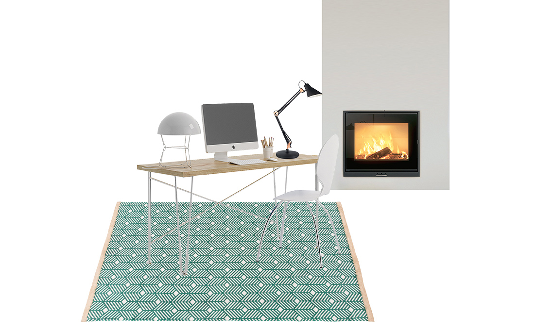 Il camino a legna è perfetto per avere la temperatura ideale nell’home office mentre, attraverso tubi incassati e diffusori a parete, porta aria calda anche negli altri locali. L'inserto a legna per camini canalizzati Vivo 70 Q Wood ha focolare autopulente; efficiente ed ecologico, è nella classe di Qualità Ambientale a 4 stelle. Con il sistema di canalizzazioni Comfort Air®, può portare aria calda in più stanze, anche non comunicanti e su piani diversi [MCZ].