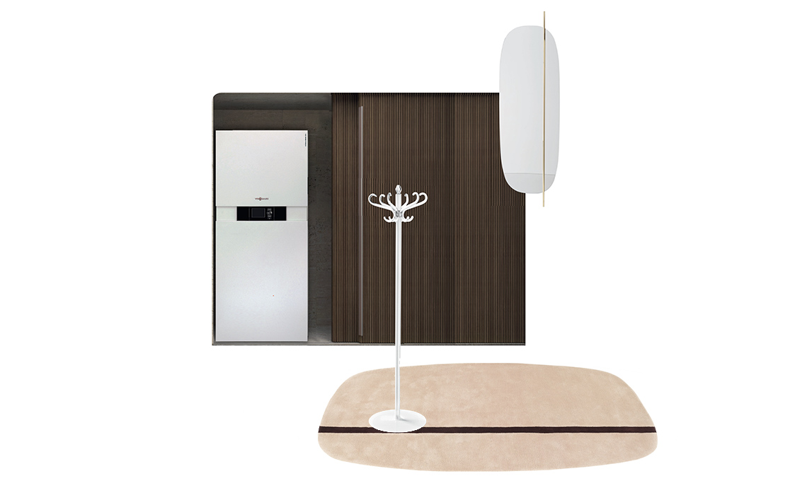 Se vuoi un eco-impianto che sfrutti al meglio energia e spazio, c’è il sistema ibrido che produce il calore ricorrendo alternativamente a elettricità o gas. È composto da: pompa di calore con unità esterna (in terrazzo) e interna (che tieni anche in una nicchia in ingresso) più la caldaia a condensazione a gas in cucina. L’impianto 3 in 1 Vitocaldens 222-F è il sistema ibrido composto da una pompa di calore aria-acqua che riscalda e raffresca la casa, da una caldaia a condensazione a gas e da un serbatoio di accumulo da 130 litri per contenere l’acqua calda sanitaria [Viessmann].