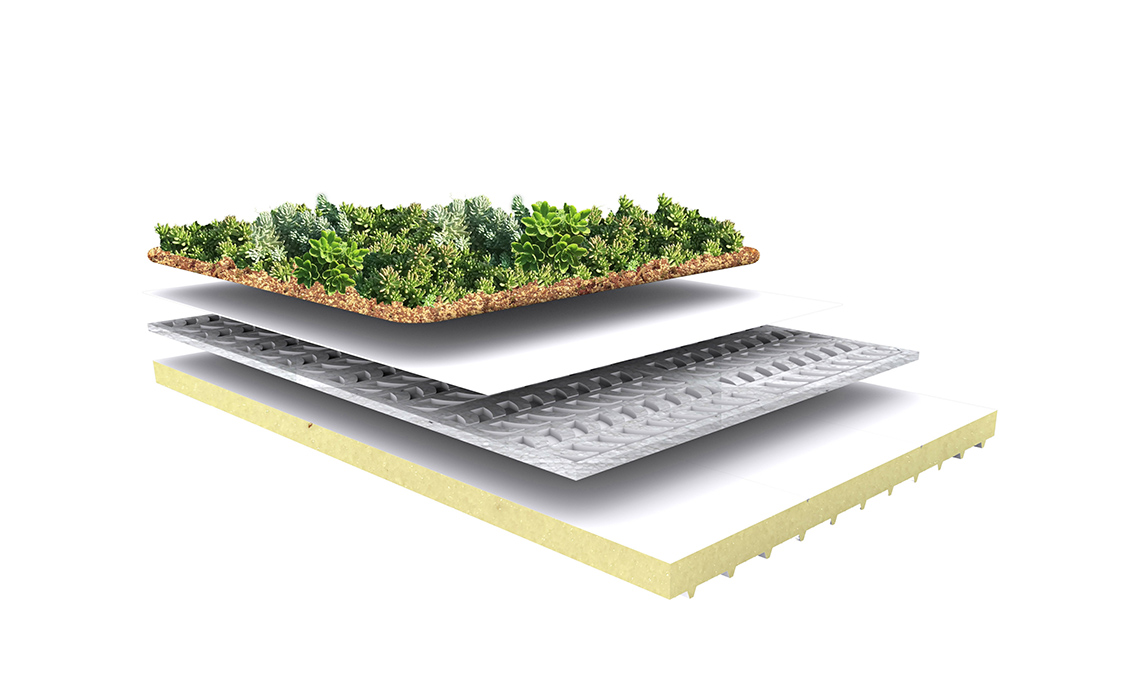 GreenROOF isola dai rumori, migliora il comfort termico in mansarda mitigando le temperature, trattiene le polveri sottili e contribuisce al miglioramento bioclimatico [Isopan].