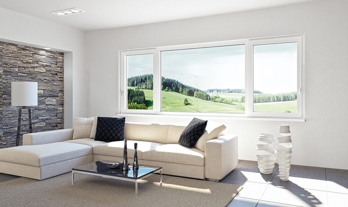 ██ Le finestre ad alto isolamento in pvc/alluminio e legno/alluminio si prestano a creare ampi spazi vetrati combinando elementi apribili e fissi e portefinestre. La vetratura basso emissiva ECLAZ® di serie lascia passare il 10% di luce in più [Internorm].