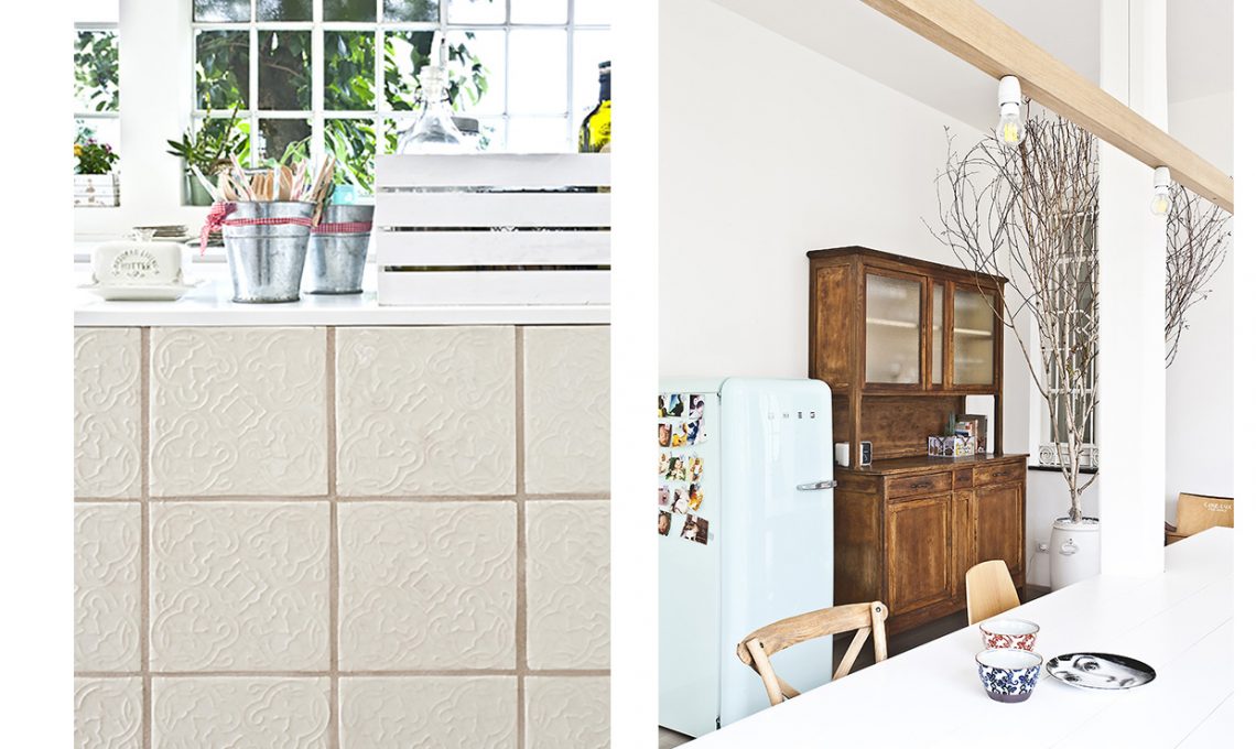 Materiali tanto diversi per tonalità, età e stile possono convivere armonicamente in un unico progetto? Certo che sì! Vedi questa casa: è un melting pot di cementine, seminati, piastrelle di cotto craquelé (con la superficie smaltata e ‘crepata’) e ceramiche lavorate a rilievo. I materiali più vecchi sfoggiano senza paura la patina del tempo, quelli nuovi una texture ricca.