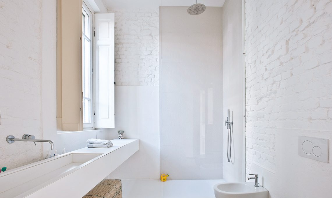 Il progetto si è sviluppato attorno a un’idea: i segni del tempo non solo non andavano cancellati, ma dovevano essere sottolineati, esibiti come un valore, un sofisticato elemento décor. Lo studio di architettura ha anche disegnato alcuni pezzi, come il grande tavolo, l’isola della cucina e un sistema di illuminazione con lampadine avvitate a una trave di recupero.