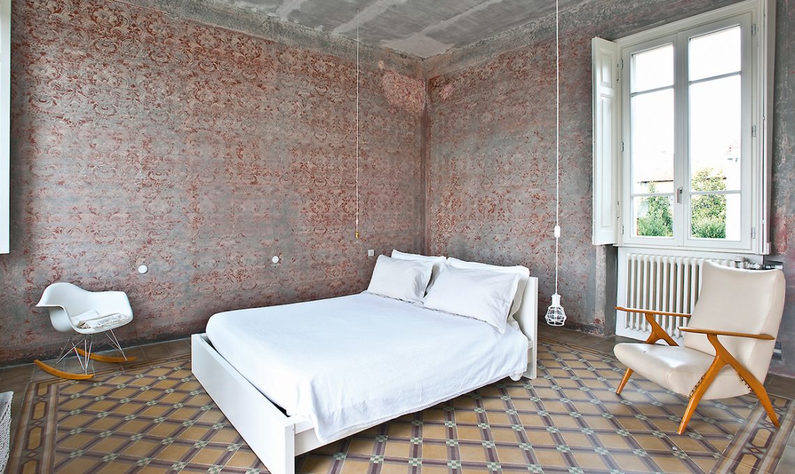 Gli antichi camini sono stati rimessi in funzione, le pareti restaurate, i pavimenti rétro ripuliti e lucidati: la vita ricomincia da dove è stata interrotta. Diego Cisi, l’architetto dello studio che ha curato il progetto, ci racconta: «Volevamo dare forma al concetto astratto e puro del tempo; potevamo farlo solo attraverso i suoi segni, i suoi magici ‘ornamenti’ naturali. Una crepa, per esempio, non è un difetto da eliminare, ma un patrimonio da salvare».