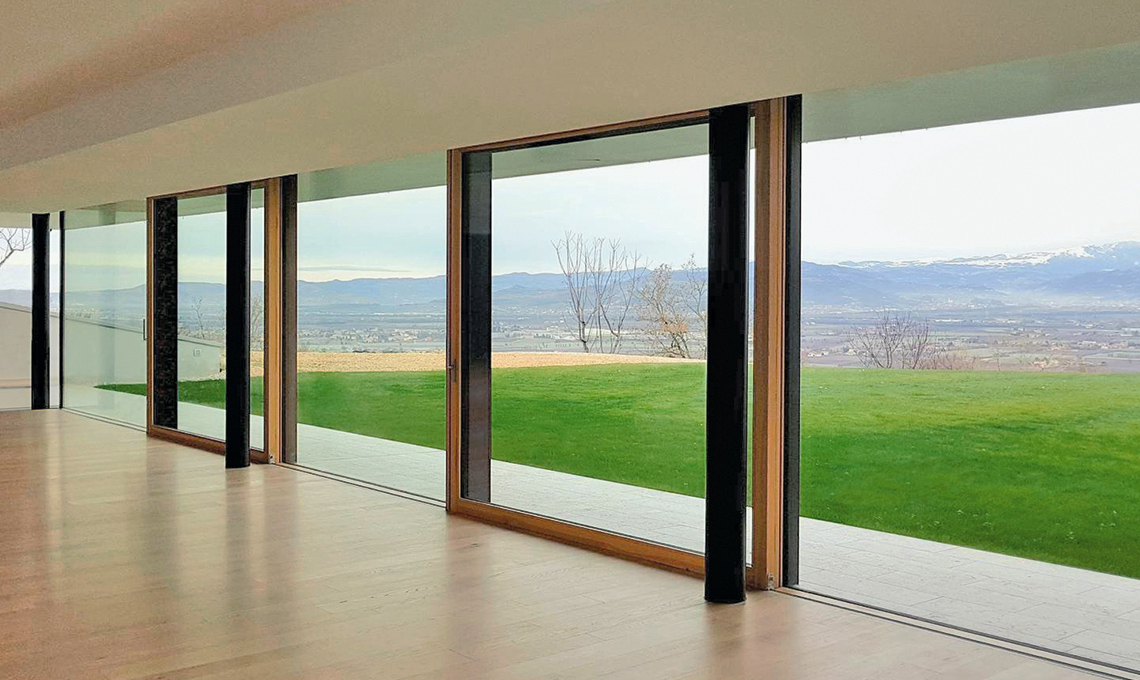 Effetto ‘solo vetro’ grazie ai profili minimali dell’anta fissa dell’alzante scorrevole Eternity Clima Minimal che rende la luce protagonista [Alpilegno].