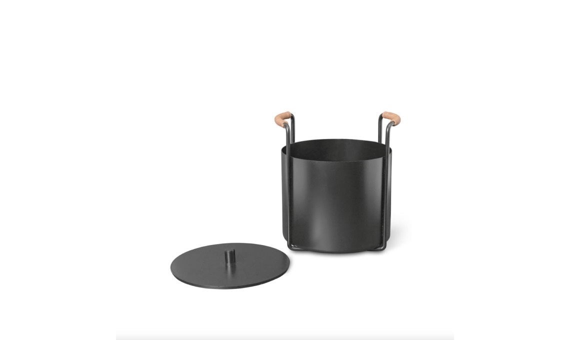 Contenitore con coperchio per la cenere del camino Port. In metallo verniciato, ha le maniglie rivestite in