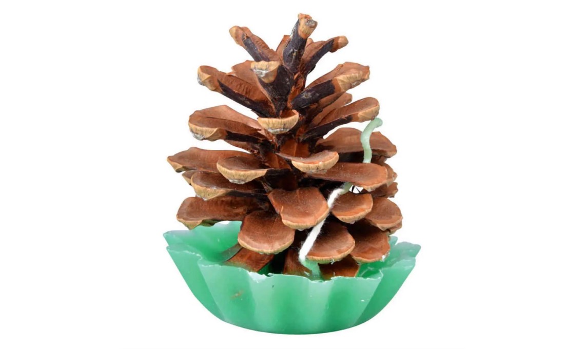 Candela con pigna d’abete per accendere il fuoco nel camino [Esschert Design € 13,60].