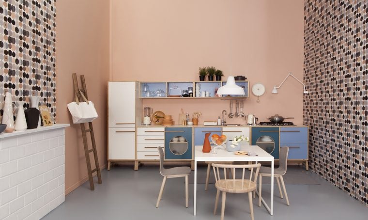 Un materiale non convenzionale per Juno: il cemento. Qui in color cipria. Design di Alessandro Dubini [Mandelli]