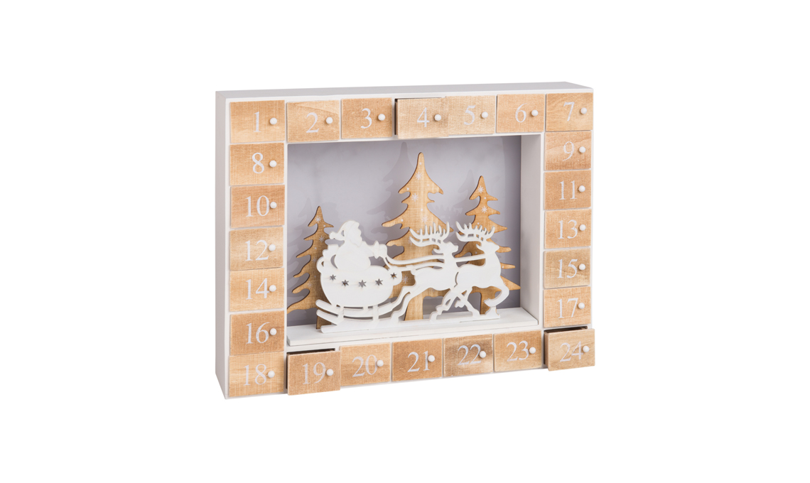 In legno, ha tanti cassettini da riempire di piccole sorprese (e si può riutilizzare di anno in anno) [Maisons du Monde]