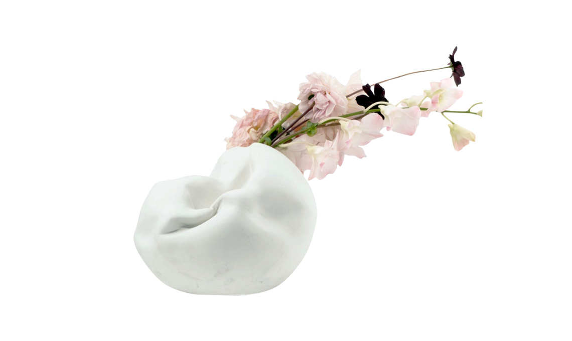 Ispirata alle sculture rupestri la lampada Moonstone Arch, in fiberglass [Giopato&Coombes, cm 48x22x84h]