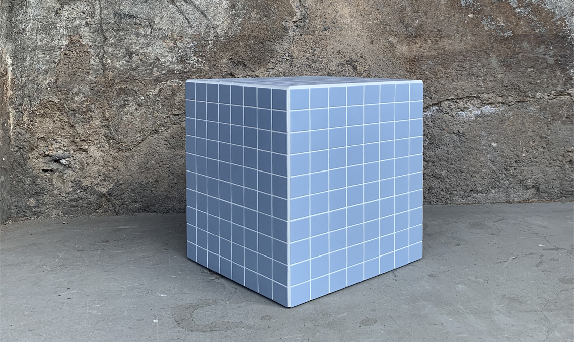 - Cubo Dusty Blue, in multistrato di legno con rivestimento in grès porcellanato, fatto a mano [cm 40x40x50h]
