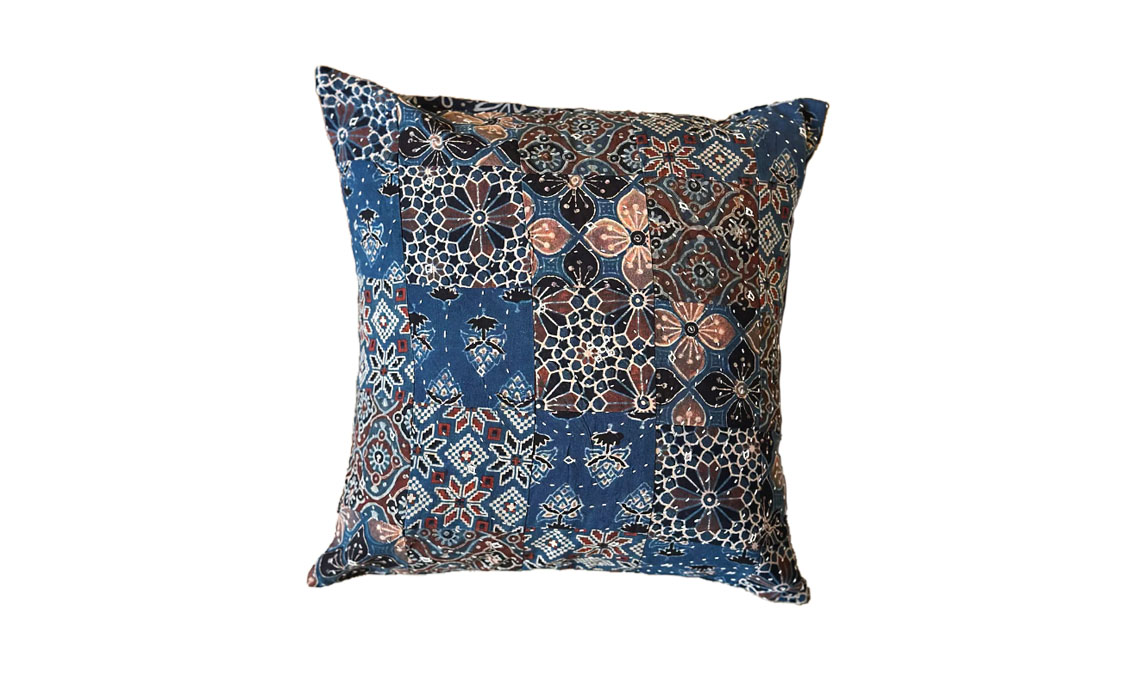 - cuscino Patchwork Blu 03 cucito a mano, realizzato con tessuto riciclato in India [cm 40x40h]