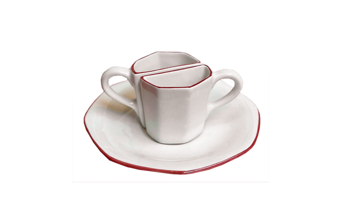 - Set caffè di tazzine Split con bordi rossi della coll. V.VM