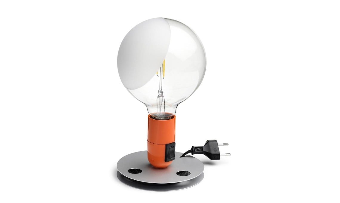La base di Lampadina richiama le bobine dei vecchi film [Flos € 145].