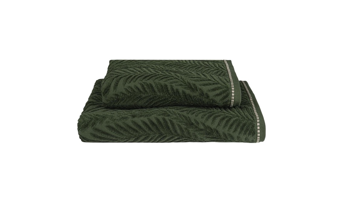 Set ospite e asciugamano Felci con disegno a effetto tridimensionale, in spugna di puro cotone Jacquard [Fazzini €43 il set]. Lo compri cliccando su questo link.