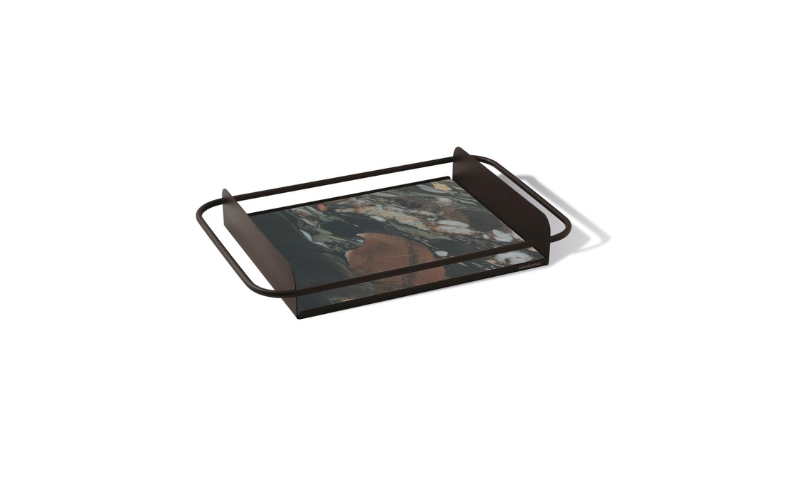 Coffee-table Ring in metallo verniciato bronzo e ceramica [Riflessi, ø cm 70x40h € 952].