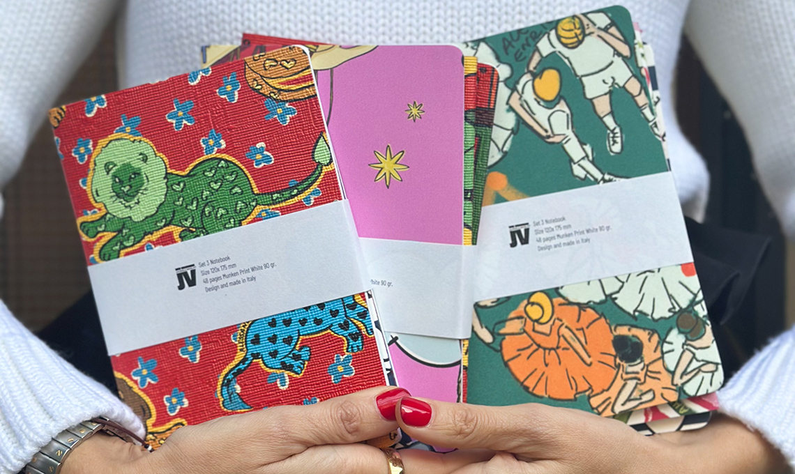 Quaderni JV edition, realizzati riutilizzando gli scarti di produzione delle carte da parati [Jannelli&Volpi]