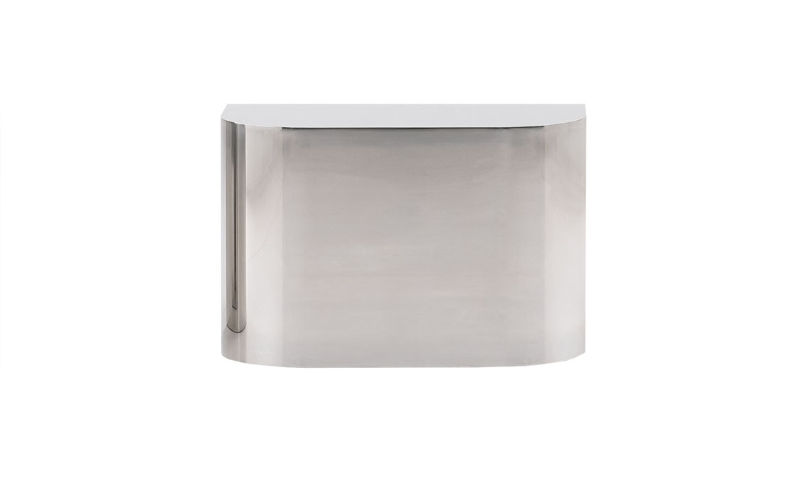 Un ‘gioco’ di gambe nel tavolo basso Shangai: acciaio inox e cristallo [Riflessi, cm 125x70x38h]