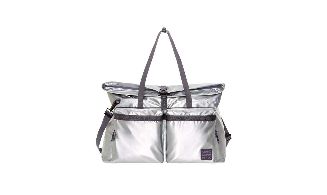 Borsone in argento Warrior, in nylon twill [Mandarina Duck, cm 55x45x20]