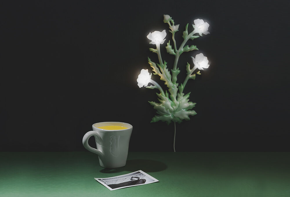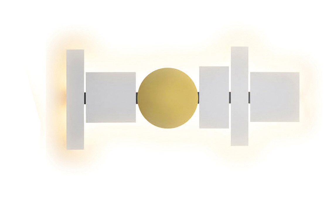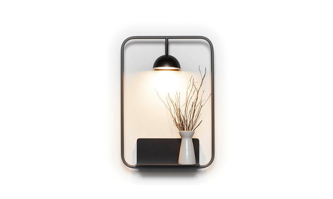 Cupolina appartiene a una collezione ispirata al classico elemento strutturale. Qui con mensolina. Led integrato 6,2W [Estiluz, cm 31x10x45h]