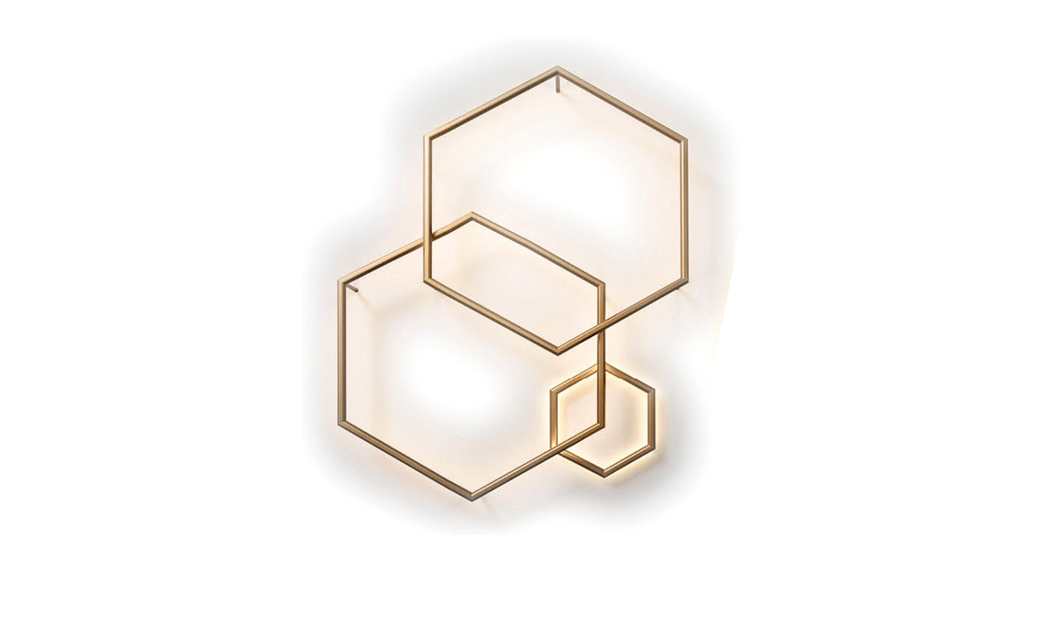 Poly Esagono PL dà una luce monodirezionale che si rifrange sulla struttura sfaccettata. Sorgente a Led 17,5W [Olev, da cm 45x39h]
