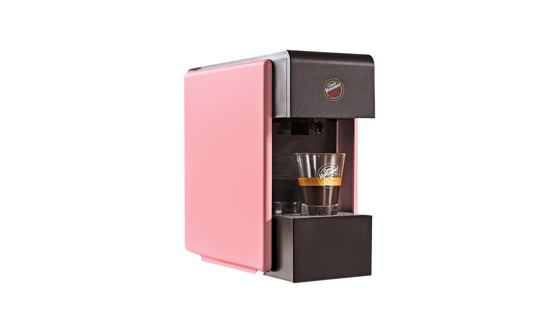 A capsule, Trè Pink ha l’erogazione programmabile. Si riscalda in 20 secondi e si spegne dopo 15 minuti in stand-by [Caffè Vergnano]