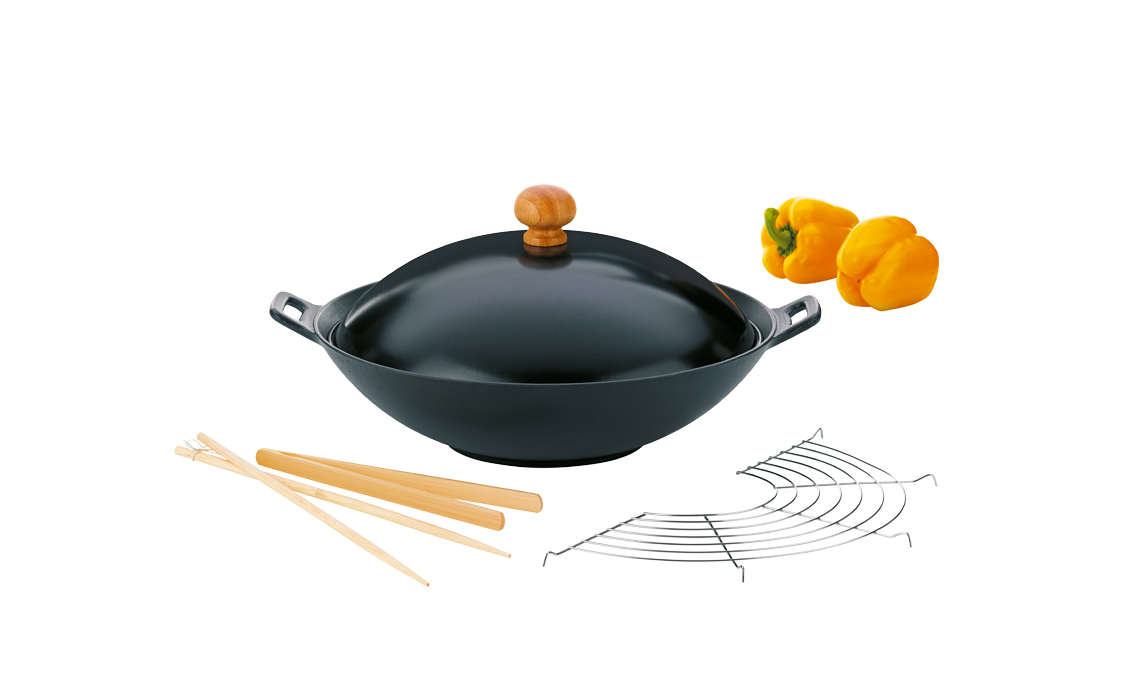 - Wok Asia in ghisa antiaderente, con accessori [Kela distr. da Maiuguali]
