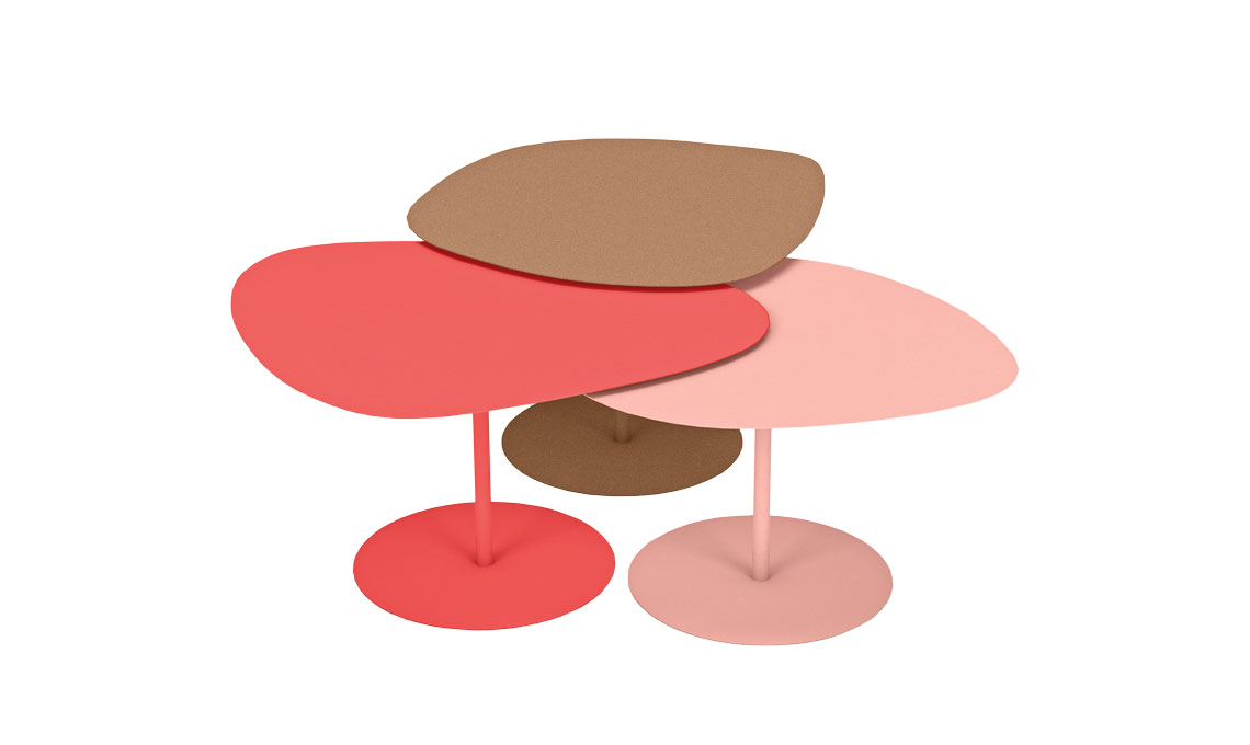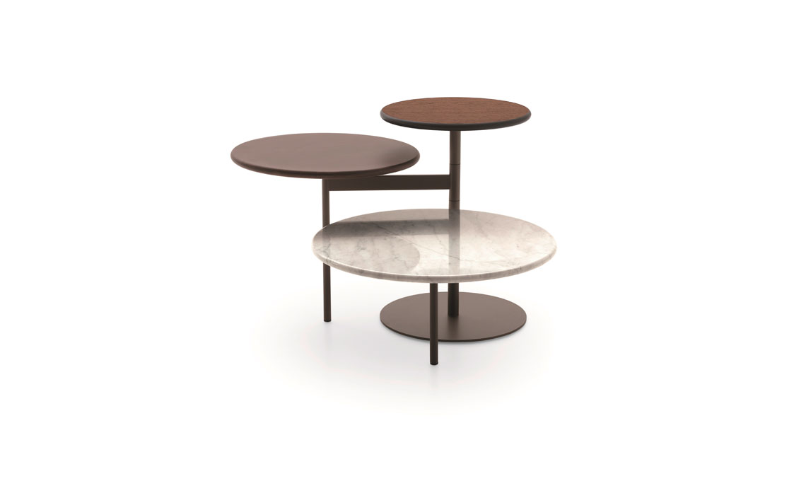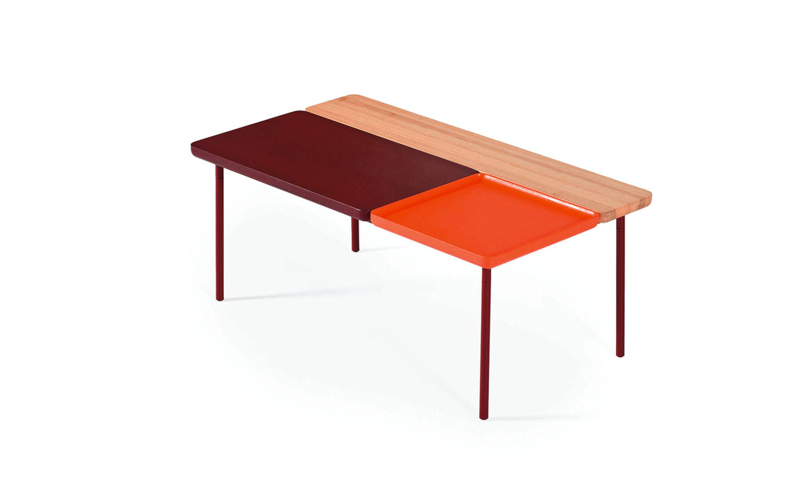 L’illusione di tre tavoli grazie ai piani differenti in Tri [Branca Lisboa, cm 110x68x33h]