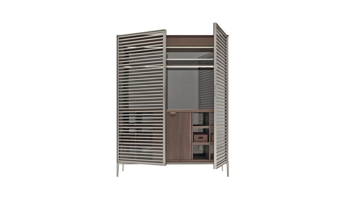 Box 18, in laccato ossidato brunito e ante cannettate [Novamobili]