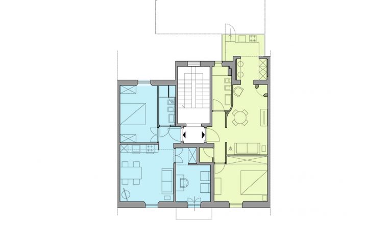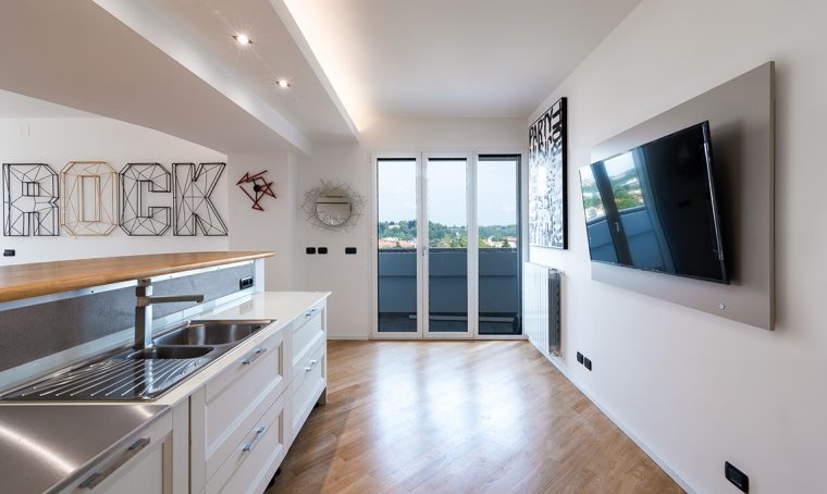 Prima & Dopo Una nuova distribuzione degli spazi e il pavimento blu cambiano aspetto a un bilocale anonimo