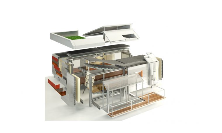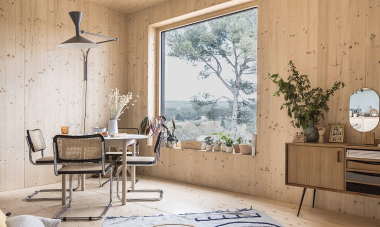 La villetta prefabbricata con rivestimento esterno in doghe di legno