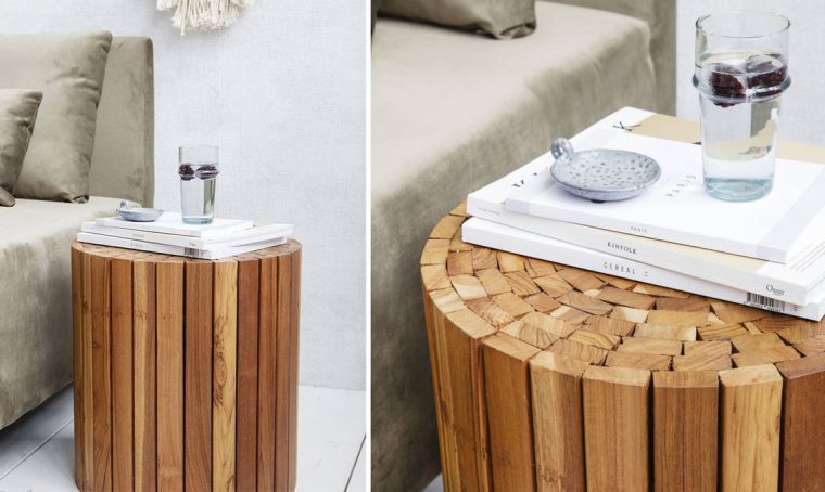 Sgabelli e tavolini in legno naturale