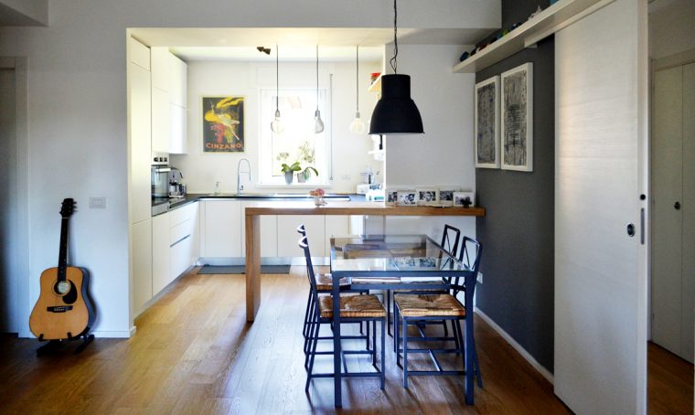 Cucina e libreria in muratura: una soluzione su misura