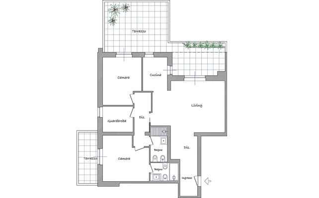 Progetti degli architetti Il progetto per un soggiorno open, la cucina nascosta e lo studio in nicchia