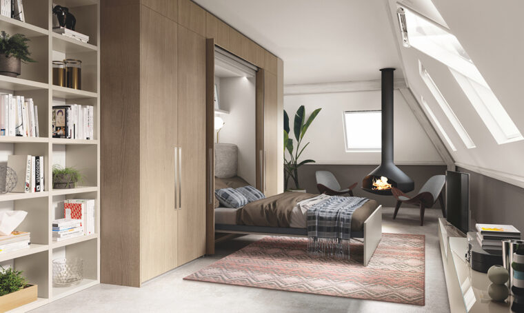 Una parete ‘magica’ e il living diventa camera, salotto e studio