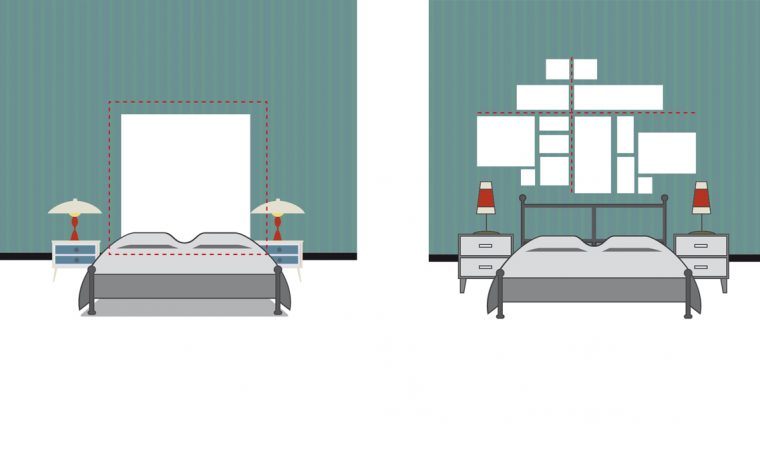 Appendere i quadri dietro al letto: effetto testiera o schema geometrico?